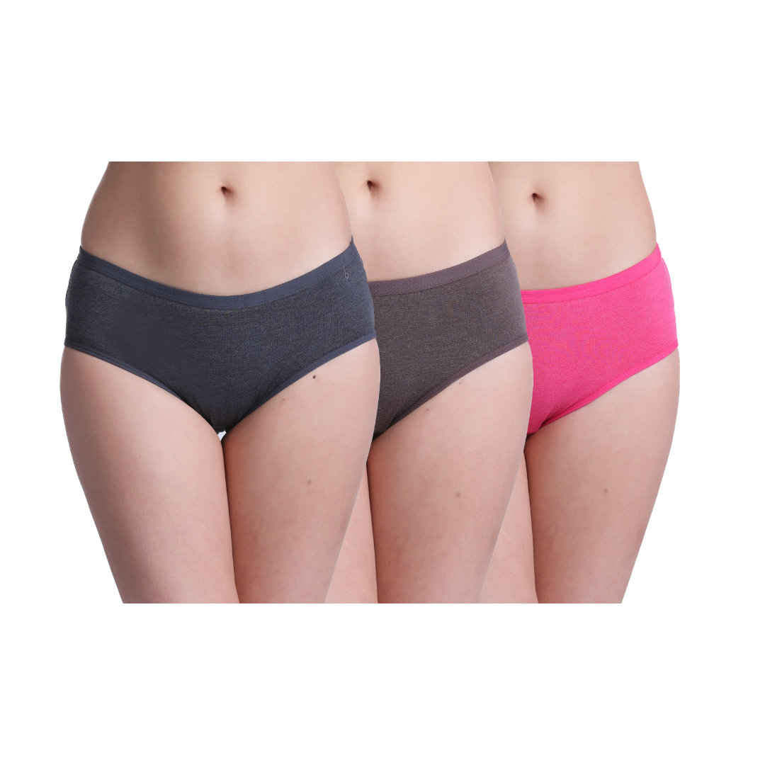 Strawberry’s Soniya Low Rise Full Coverage Hipster Panty (Pack Of 3) ( D Grey | Coffee | Pink )